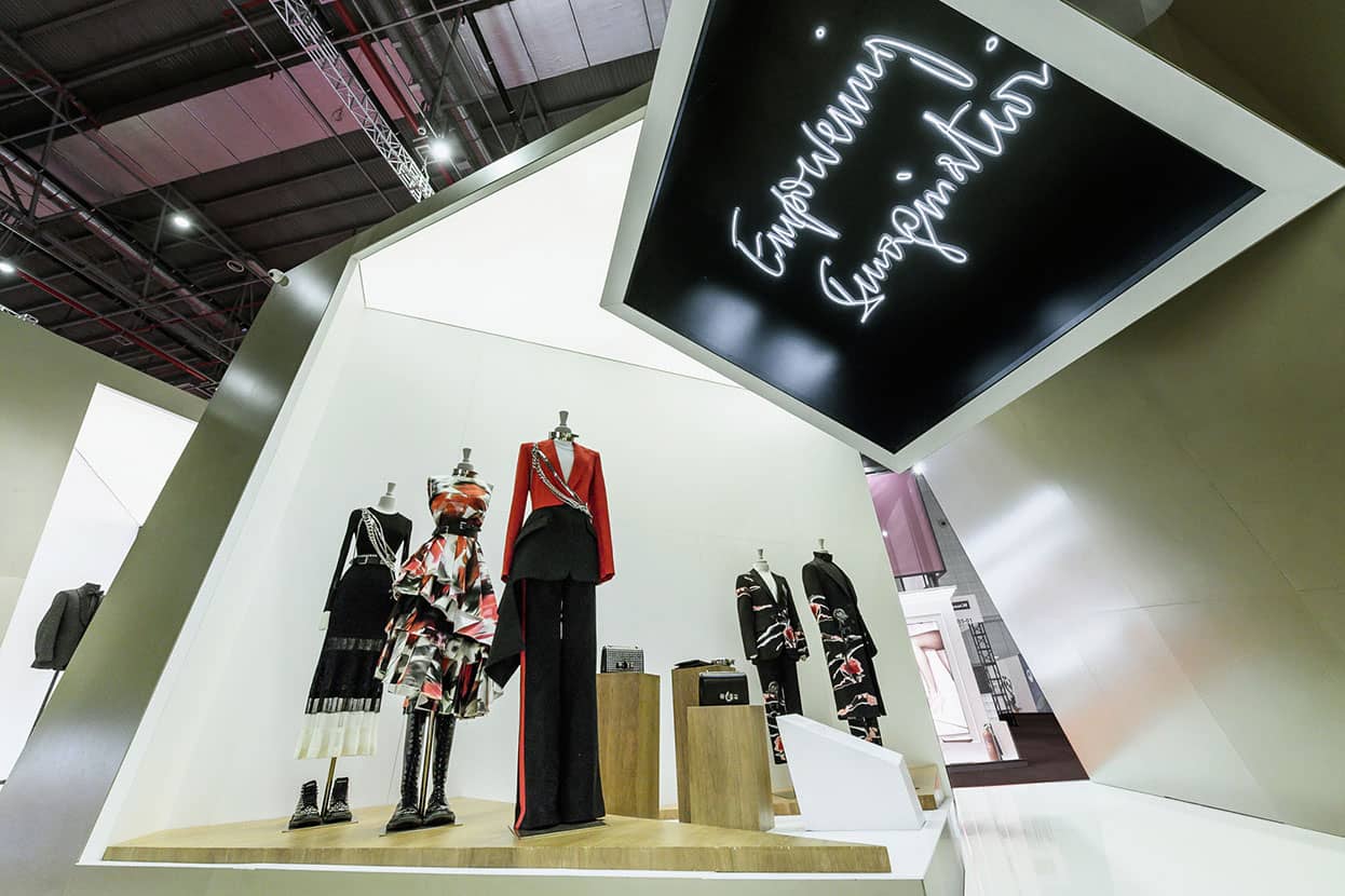 Alongside bespoke presentations of its Luxury Houses, the Pavilion showcases Kering’s vision of a Modern Luxury. The Kering Lounge displays the group’s history of innovation through multisensory installations, live-casting, and interactive displays. The Sustainability Lab, an enclosed educational area, presents Kering’s wide-ranging sustainability initiatives, including My EP&L app, a simple intuitive tool that measures the environmental impact of fashion garments and is devised to help fashion designers integrate sustainable thinking in the creative process; the Massive Online Sustainability Course (MOOC), an open-access digital course in sustainable luxury fashion organised in collaboration with the London College of Fashion; and the Materials Innovation Lab (MIL), which presents a library of sustainable fabrics as a driver of change across the industry, encouraging sourcing of innovative materials with lower environmental impact.