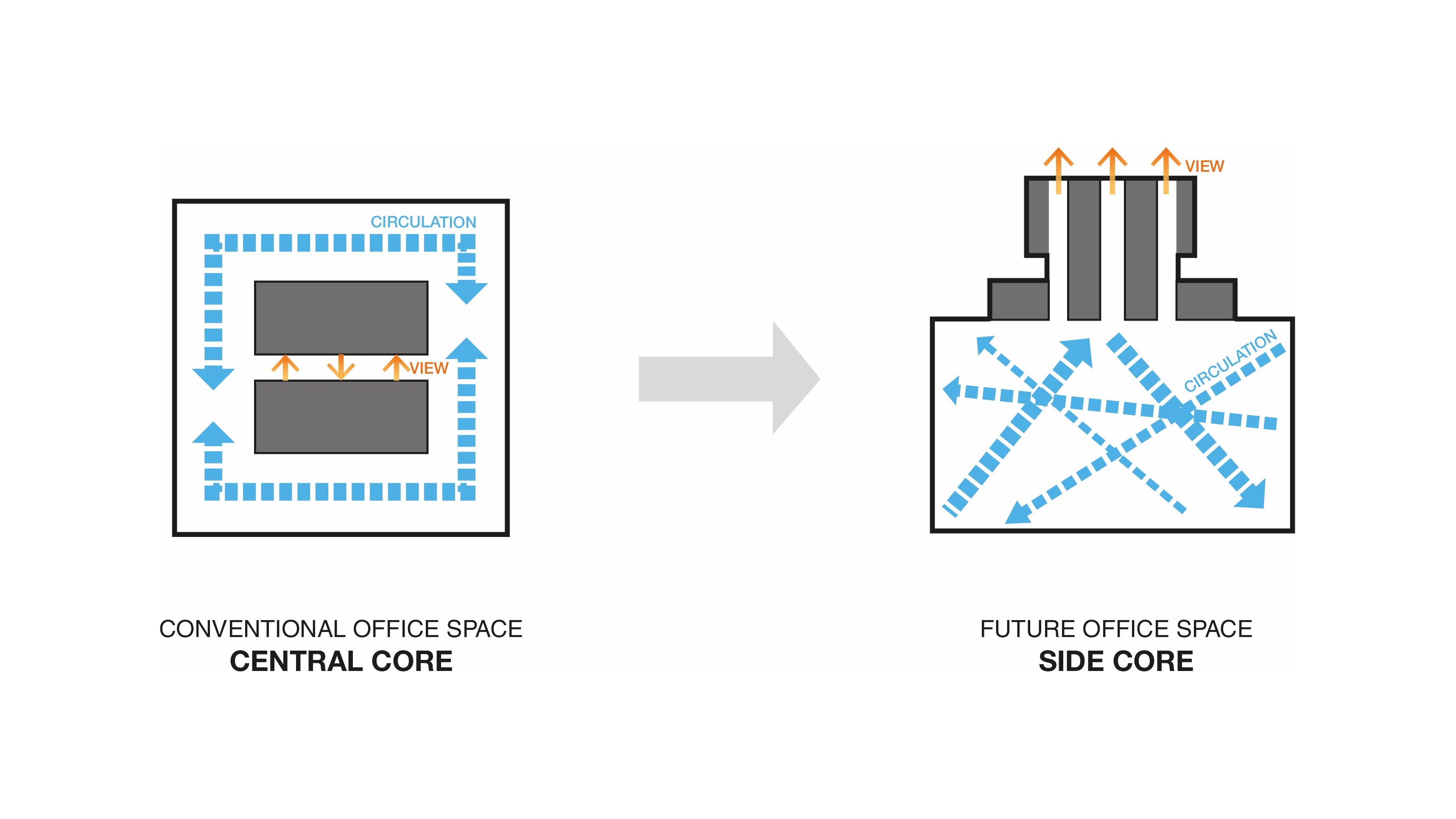 The Axiom embeds itself in the city with the Cultural Gate, a mixed-use podium which will connect the twin towers at its southern tips. The podium houses informal workspaces, public roof terraces and cafes, creating a sense of life and vitality that spreads throughout its surroundings. The Cultural Gate guides visitors into the centre of The Springs and towards a multi-form theatre for cultural events and activities, further dissolving the boundaries between the corporate function and public realm.